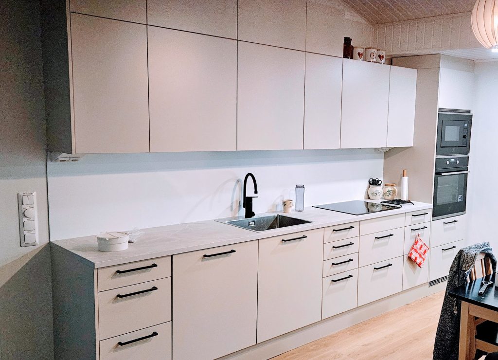 Jos kyseessä on kevyt päivitys (ovien ja tasojen vaihto), työ valmistuu yleensä 2–3 päivässä. Täydelliset keittiöremontit suunnitellaan aina tapauskohtaisesti, mutta pyrin minimoimaan keittiön poissaolon käytöstä.